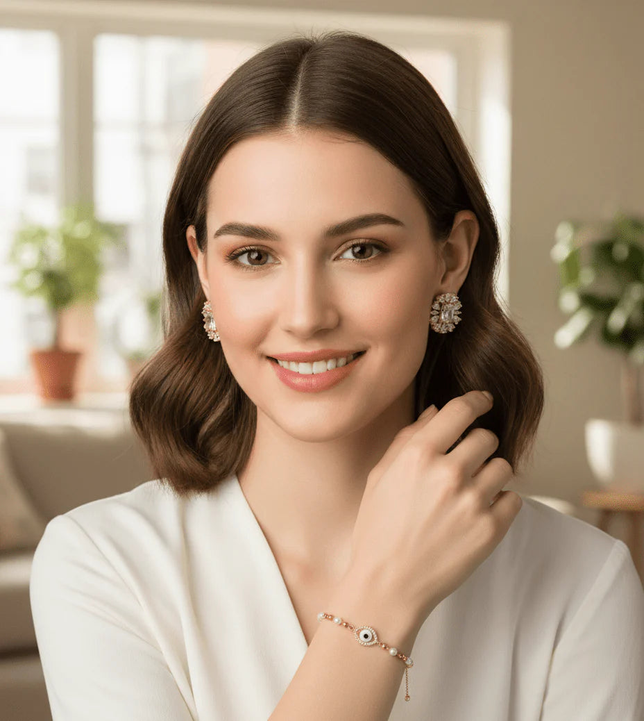 The Pearl Beaded Evil Eye Bracelet combines traditional symbolism with modern elegance. Featuring a blue evil eye charm at the center of a delicate beaded chain, this bracelet offers both protection and style. Available in Gold and Silver, it’s designed to complement any outfit — from casual wear to formal looks.